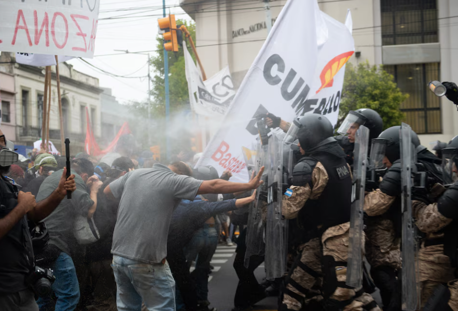 «Nos cerraron la fábrica. Tengo un hijo con discapacidad y nos mandaron un correo de un día para el otro. Nos negamos a comer de la basura», esgrimió el trabajador ante la impasibilidad del uniforme.