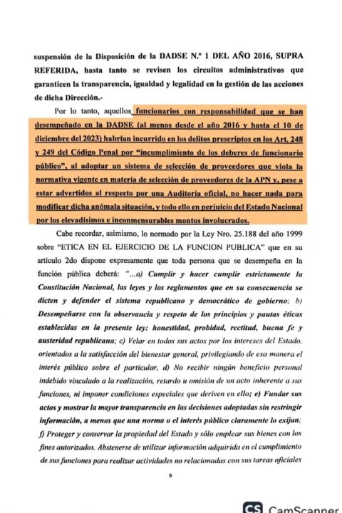 En uno de los párrafos más salientes, el escrito describe: “La selección de los proveedores de la DADSE a los efectos de que el Estado argentino adquiera medicamentos por miles de millones de pesos se realiza vía e-mails (correos electrónicos simples y comunes, no encriptados, sin sobre cerrado ni seguridad) a una cadena de usuarios que no se actualiza periódicamente ni se certifica su titularidad. Una vez recibidos dichos e-mails, ciertos supuestos proveedores remiten presupuestos informales sin firma ni rigorismo alguno y es, en virtud de tales presupuestos, que la administración correspondiente, siguiendo la disposición dictada en 2016, selecciona antojadizamente al proveedor al que comprarle los costosísimos medicamentos, sin siquiera un cuadro comparativo como exige dicha norma, por ejemplo”.