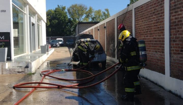 Sucedió hace minutos en Ruta 25 y Víctor Manuel II. Un automóvil Ford Ka se prendió fuego y en auxilio acudió de inmediato un móvil de Bomberos Voluntarios de Matheu al mando del Suboficial Rubén Brusa.