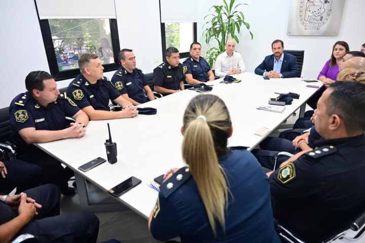 El intendente mantuvo una importante reunión de trabajo con el nuevo jefe departamental Escobar, el comisario inspector Diego Enríquez; el jefe del Comando de Patrullas de Escobar, Marcos Bautista Britos Heredia; y autoridades de las comisarías y destacamentos del distrito, incluidos quienes asumieron sus funciones en las últimas horas y que conforman el nuevo esquema policial del partido de Escobar.