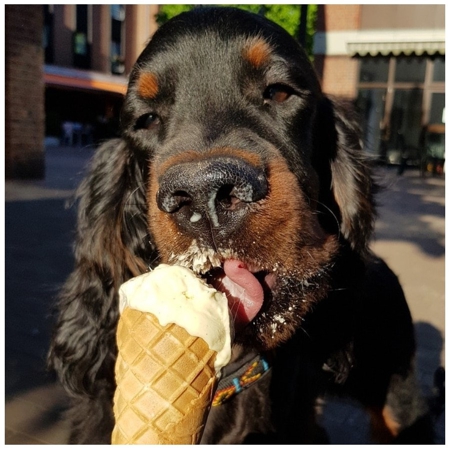 No caigan en la tentación de darle a su perro una bola de helado en un caluroso día de verano, ya que ambos se arrepentirán más tarde. Denles un poco de agua helada en su lugar.