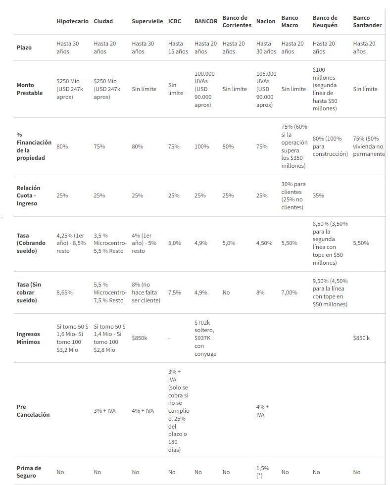 A continuación, un cuadro comparativo de cada una de propuestas de los bancos para acceder al crédito para vivienda, para tomar la decisión más adecuada según la necesidad del cliente: