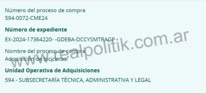 En efecto, el gobierno bonaerense decidió darse algunos lujos. De acuerdo al proceso de compra Nro. 594-0072-CME24, el gobierno de Kicillof saldrá al mercado a comprar unas 450 bicicletas.