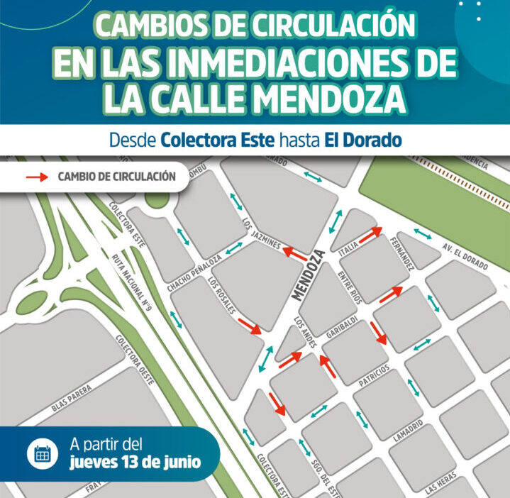 A raíz de demandas de vecinos y comerciantes de la zona, y de la aprobación unánime del proyecto por parte del Concejo Deliberante, la Secretaría de Planificación Territorial y Espacio Público en conjunto con la Secretaría de Planificación e Infraestructura realizarán los cambios de sentido en las siguientes calles: Los Rosales, entre Chacho Peñaloza y Mendoza tendrá sentido norte a sur; Santiago del Estero, entre Mendoza y Patricios (norte a sur); Entre Ríos, entre Mendoza y Patricios (norte a sur); Los Jazmines, entre Mendoza y Chacho Peñaloza (sur a norte); Los Andes, entre Patricios y Mendoza, (sur a norte); Italia, desde Entre Ríos hasta Ricardo Fernández (oeste a este) y Garibaldi, entre Santiago del Estero y El Dorado, (oeste a este).