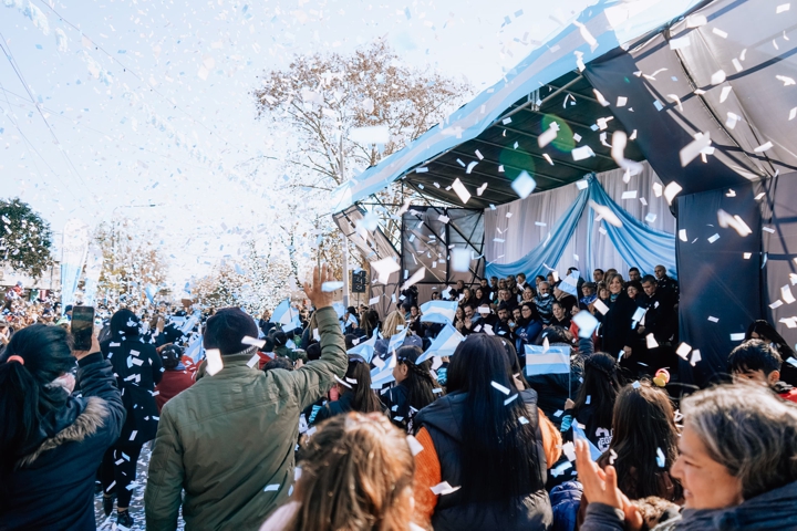 Se vivió una jornada de celebración para conmemorar el Día de la Independencia, que comenzó con el tradicional Tedeum en la parroquia local, luego el desfile, variada gastronomía, músicos locales y el cierre con un gran show de la banda de cumbia La Nueva Luna.