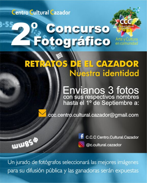 Los participantes deberán enviar hasta tres fotografías en formato digital al correo electrónico ccc.centro.cultural.cazador@gmail.com hasta el 1º de septiembre de 2024. La participación es libre y gratuita.