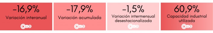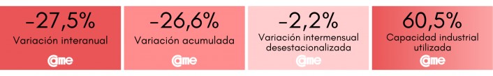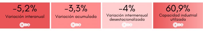 Los resultados surgen del Índice de Producción Industrial Pyme (IPIP) que elabora CAME, con una muestra que alcanzó a 414 industrias pyme a nivel federal.