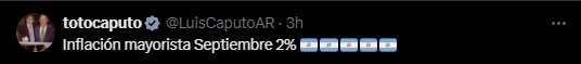 “Seguimos normalizando el mercado de cambios”, aseguró en redes el ministro de Economía, Luis Caputo, en modo de festejo. Lo mismo hizo al dar a conocer la inflación mayorista de septiembre, que fue del 2%.