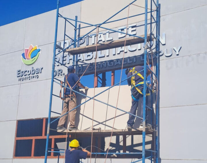 En la fachada de ingreso al Hospital de Rehabilitación se reemplazaron las placas de fibrocemento dañadas, se aplicó una pintura protectora y se instaló el logo del centro. En el interior, se pintó y se colocaron topes para proteger los muros del impacto de camillas, y se sustituyeron las griferías y la iluminación en su totalidad.